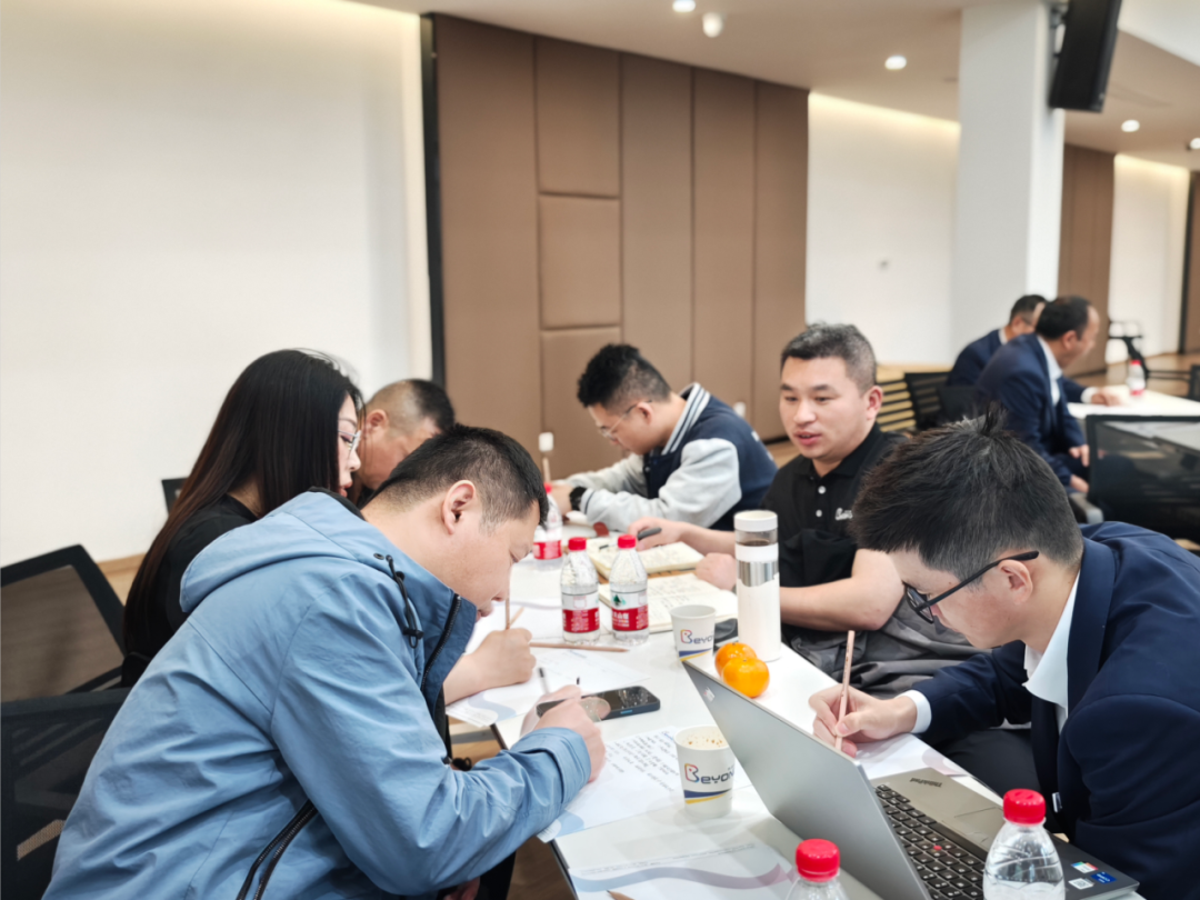 培训老师风趣幽默的讲了金牌销售的成长体系,现场气氛活跃,小伙伴们热情高涨,纷纷认真记录拍照,根据培训内容,进行平时销售流程中实际问题的讨论。