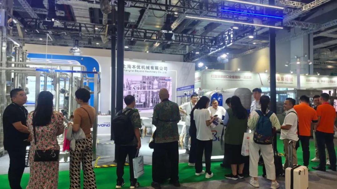 展会首日,本优展台人头攒动,吸引了大批专业观众的目光。作为行业内的高新技术企业,我们展示了12T/H蒸汽直喷杀菌机、50L发酵双联体、实验室成套机组、双道打浆机等产品,充分展示了公司在乳品饮料、果蔬汁、生物发酵/制药以及综合食品等领域的先进理念和技术实力。